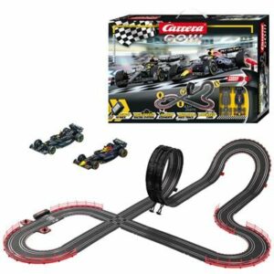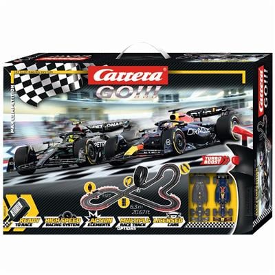 Formule 1-sfeer met racen op hoge snelheid In de Carrera GO!! De Mercedes-AMG F1 W14 E Performance L. Hamilton, die werd ingezet door het Mercedes-AMG Petronas Formula One Team, en de Red Bull Raci ng RB19 M. Verstappen, van Red Bull Racing. In deze set dompelen fans zich onder in de wereld van de hogesnelheidssporten en nemen ze het tegen elkaar op in authentieke Formule 1-races in het comfor t van hun eigen huis. Het 6,3 meter lange racecircuit met rechte stukken en kruispunten nodigt uit t ot snelle inhaalmanoeuvres.