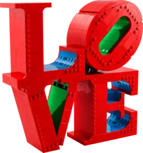 - Een eerbetoon aan een beroemd werk – dit 3D LOVE model van LEGO® stenen ziet eruit als de echte sculptuur, met hetzelfde ontwerp en levendige rode, blauwe en groene kleuren