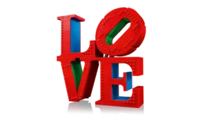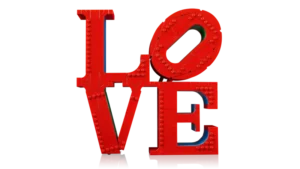 - LEGO® idee voor woondecoratie – deze LEGO versie van het LOVE beeldhouwwerk is een indrukwekkende blikvanger in elke kamer van je huis