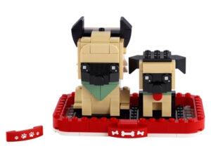 Kinderen die dol zijn op huisdieren zullen deze BrickHeadz™ set van een hond en een puppy die ze kunnen bouwen en uitstallen geweldig vinden. De Duitse herder draagt een halsdoek en heeft een beweegbare staart. De puppy ziet er ontzettend schattig uit met zijn rode tongetje dat naar buiten hangt. De honden zitten samen in een versierde mand op een stevige bodemplaat. Daardoor is deze bouwbare huisdierenset een geweldig cadeau voor alle kinderen, BrickHeadz verzamelaars en dierenvrienden.