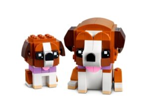 Hondenliefhebbers zullen het geweldig vinden om deze LEGO® BrickHeadz™ Sint-bernard (40543) te bouwen en ermee te spelen. Deze superschattige modellen van een sint-bernardshond en een puppy hebben roze halsbanden om en hun tong hangt uit hun bek. De honden kunnen naast de groene struik worden neergezet op de bouwplaat of worden losgemaakt zodat kinderen vanaf 8 jaar er avonturen mee kunnen beleven.