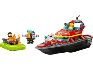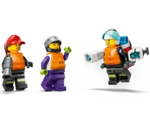 - Wat zit er in de doos? – alles wat kinderen nodig hebben om een brandweerboot en rubberen bootje te bouwen, plus 3 minifiguren met leuke accessoires, waaronder een jetpack voor de brandweer