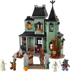 Jongens en meisjes vanaf 9 jaar genieten van 3 bouwmogelijkheden met dezelfde stenen: een interactief spookhuis, een spookschip of een spooktrein met een perron. Elke speelset wordt geleverd met 5 minifiguren: een weerwolf, een vampier, een spook met een cape die oplicht in het donker, het monster van Frankenstein en een skelet.