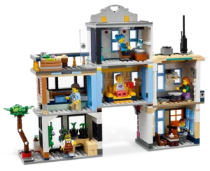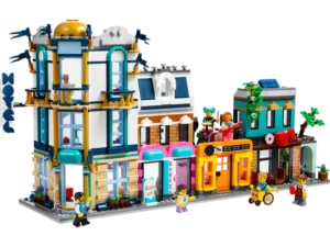 Kinderen kunnen een Hoofdstraat met 4 panden creëren en deze ombouwen naar een marktstraat of een wolkenkrabber met 4 verdiepingen.