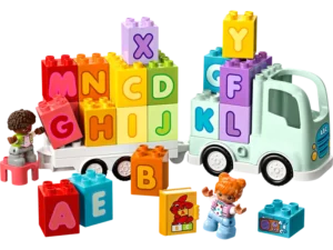 Klim aan boord van de herbouwbare LEGO® DUPLO® Alfabetvrachtwagen waarmee peuters op een leuke manier het alfabet kunnen leren.