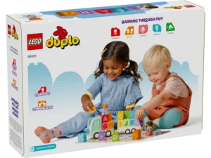 Klim aan boord van de herbouwbare LEGO® DUPLO® Alfabetvrachtwagen waarmee peuters op een leuke manier het alfabet kunnen leren.