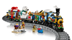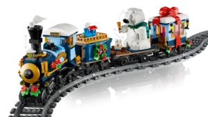 De LEGO® Icons Feestelijke kersttrein (10361) modelset is er! Maak een locomotief met een rokende schoorsteen, een kolentender, een platte wagon met een ijsbeer die een bel luidt en een wagon met een gemeubileerd interieur. Deze bouwset voor volwassenen bevat ook 4 minifiguren, een perron met een bankje en lantaarnpaal en miniatuurspeelgoed, waaronder (voor het eerst in een LEGO set) een 3D-geprint treinstuk. Bouw het spoor rond je kerstboom en voeg de LEGO Powered Up set (apart verkrijgbaar) toe om de locomotief te motoriseren.