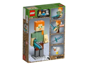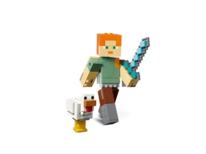 - Bouwbare, grote LEGO® Minecraft™ Alex actiefiguur met beweegbare gewrichten en geautomatiseerde linkerarm, plus een bouwbaar zwaard en een Minecraft kip.