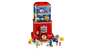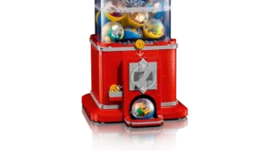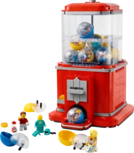 - Authentiek verkoopmechanisme – steek een LEGO® munt in de gleuf, draai aan de hendel om er een capsule uit te laten komen en gebruik de onderdelen om een LEGO minifiguur te bouwen