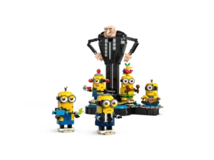 Dit bouwbare Gru figuur is omringd door dansende Minions, een geweldig cadeau voor fans van de Verschrikkelijke ikke films van Illumination.