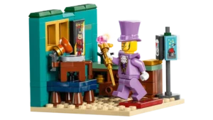 De set bevat 10 NINJAGO minifiguren: Zane, Pixal, een modelwinkeleigenaar, een werkplaatsmonteur, een restaurantmedewerker en een Draconische toerist, plus niet eerder uitgebrachte minifiguren van Dorama, Dr. LaRow, Harumi, Nerveuze Tim en een bouwbare figuur van Dorama’s marionet. Fans kunnen met deze personages confrontaties naspelen uit seizoen 3 van de tv-serie NINJAGO De Drakenstrijd.