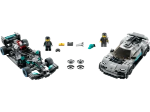 - LEGO® versies van de Mercedes-AMG F1 W12 E Performance en Mercedes-AMG Project One – 2 replicamodellen voor kinderen en volwassen die van innovatieve voertuigen houden