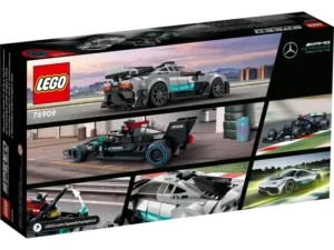 Kinderen en racefans kunnen nu 2 toonaangevende racevoertuigen in huis halen en van dichtbij ontdekken met deze LEGO® Speed Champions Mercedes-AMG F1 W12 E Performance & Mercedes-AMG Project One (76909) bouwset. Deze speelgoedauto’s zijn de droom van elke verzamelaar. Na het leuke bouwproces kun je ze op een mooi plekje neerzetten en er allerlei spannende races mee houden.