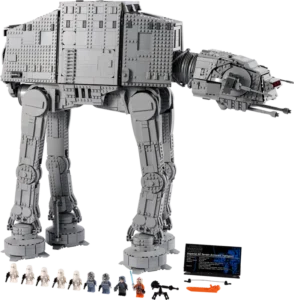 De AT-AT is ca. 62 cm hoog. De gedetailleerde romp kan open en biedt plaats aan maar liefst 40 LEGO minifiguren (bij deze set zijn er 9 inbegrepen, waaronder generaal Veers en Luke Skywalker), 4 speederbikes (2 inbegrepen) en de E-Web zware snelvuurblaster. In de kop passen 2 LEGO minifiguren en er is plek voor een derde. Met het informatieplaatje maak je dit indrukwekkende model helemaal af.