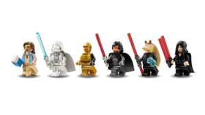 Deze bouwbare ruimteschipset is inclusief 6 LEGO Star Wars minifiguren zoals je ze nog nooit eerder hebt gezien, waaronder Darth Jar Jar, Strand Luke en Jedi Vader.
