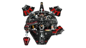 - Eenvoudige toegang – klap de panelen omhoog om te spelen met het gedetailleerde interieur, inclusief een uitneembare troon voor Darth Jar Jar, een commandocentrum, een hyperdrive, stapelbedden, een relaxgedeelte en een gevangeniscel