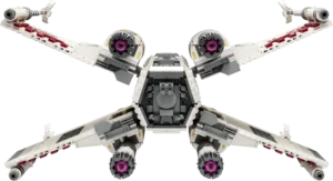 - Authentieke details – draai aan de knop boven op de X-wing om de vleugels aan te passen voor de vlucht- en aanvalsmodi. De set heeft ook ruimte voor R2-D2 achter de cockpit