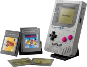 - Authentieke details – bouw de +Control Pad, de A- en B-knoppen, SELECT en START, de contrast- en volumeknop en de Game Pak-sleuf na en zet je Game Boy™ op de standaard