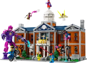 De 3093-delige X-Men X-Mansion met 2 verdiepingen is ca. 40 cm breed en bevat een bouwbare Sentinel figuur en 10 X-Men minifiguren: Professor X, Wolverine, Jean Grey, Cyclops, Storm, Gambit, Rogue, Iceman, Bishop en Magneto. Op de bovenste verdieping bevindt zich het laboratorium van Professor X, de slaapkamer van Wolverine en een medisch laboratorium. Op de begane grond vind je een lobby, een klaslokaal en een bibliotheek. Aan de linkerkant van de X-Mansion is de Danger Room-trainingsfaciliteit, die toegankelijk is via een schuifdeur en opnieuw kan worden ingedeeld. Interactieve functies zijn onder andere een verschuifbaar whiteboard en het dak dat kan worden vernietigd door een schakelaar te activeren.