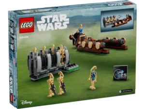 Creëer een Handelsfederatie troepentransport (40686) ter gelegenheid van het 25-jarig jubileum van Star Wars: The Phantom Menace en de LEGO® Star Wars™ sets. Dit bouwbare Star Wars voertuig voor volwassenen heeft ruimte voor 2 Pilot Battle Droid LEGO figuren en 6 Battle Droids die op het bagagerek passen, klaar voor de Slag om Naboo. Het rek schuift uit en kan worden opengevouwen, net als in Star Wars: The Phantom Menace, en biedt plaats aan de blasters van de Battle Droids. Een LEGO Star Wars steen ter ere van het 25-jarig jubileum maakt deze blikvanger compleet.