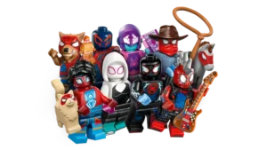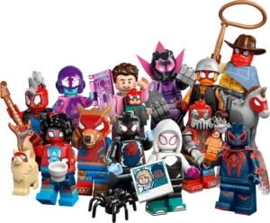Elk doosje bevat 1 Spider-Man minifiguur en er zijn er in totaal 12 om te verzamelen: Miles Morales/Spider-Man, Miguel O’Hara/Spider-Man 2099, Gwen Stacy/Spider-Gwen, Hobie Brown/Spider-Punk, Pavitr Prabhakar/Spider-Man India, Miles G. Morales/Prowler, Peter B. Parker/Spider-Man en May “Mayday” Parker, Margo Kess/Spider-Byte, Peter Parker/Werewolf Spider-Man, Patrick O’Hara/Web-Slinger, Petra Parker/Cyborg Spider-Woman en Charlotte Webber/Sun-Spider.