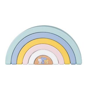 Deze Woezel en Pip regenboog uit de baby collectie is een aanwinst voor je baby of kinderkamer. Mooi als decoratie maar ook erg leuk om mee te spelen! De regenboog bestaat uit 6 houten delen die op en in elkaar passen, in de zachte kleuren blauw, roze, grijs wit en okergeel. Op het kleinste onderdeel is een fraaie print van Woezel, Pip en Buurpoes aangebracht. Met de halfronde vormen kan je kindje spelen met evenwicht en allerlei creaties maken door zijn of haar fantasie te gebruiken. Wat denk je van een treintunnel, een huisje voor kleine poppetjes of bergen voor autootjes? De mogelijkheden zijn eindeloos! Wordt geleverd in full-colour doos. Geschikt voor kinderen vanaf 18 maanden.